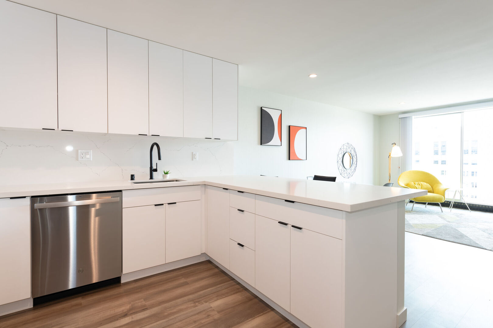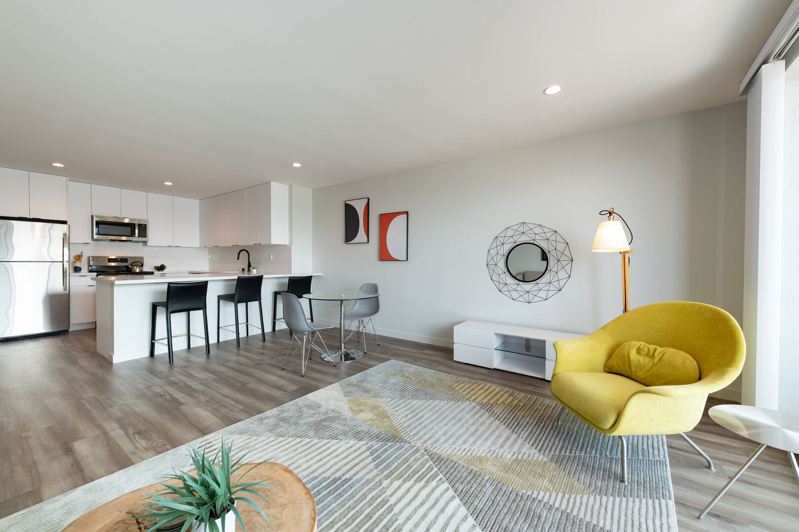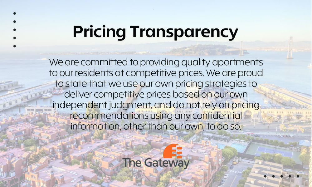 Discover spacious studio, one-, two- and three-bedroom apartment homes plus two-, three- and four-bedroom townhomes at The Gateway. Located where FiDi, North Beach, Jackson Square and The Embarcadero meet, our community combines an unbeatable San Francisco address with thoughtfully designed residences. Hardwood-style vinyl flooring, quartz countertops, and expansive windows frame sweeping views of the city and Bay, while rooftop decks offer a front-row seat to the iconic skyline.
